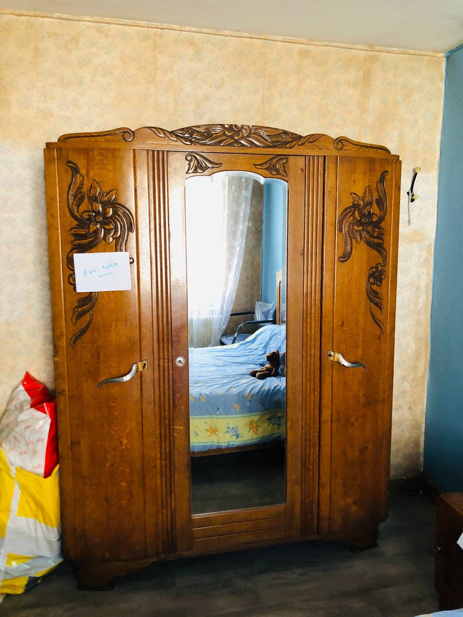 Belle et grande armoire remise au goût du jour avec une teinte créée par l'Atelier de Pépé Charles.